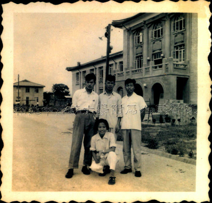 1958年交通路上省人民醫(yī)院門(mén)診樓、辦公樓、病房樓前合影