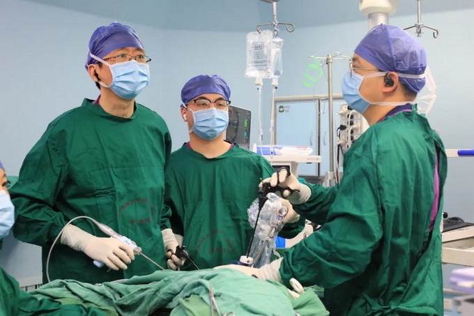 ▲婦科陳捷主任醫(yī)師團(tuán)隊(duì)行腹腔鏡下陰道成形術(shù)