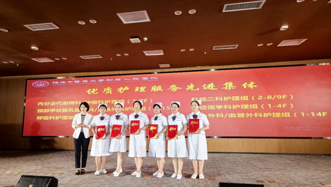 黨委副書記、紀(jì)委書記李藝華為優(yōu)質(zhì)護(hù)理服務(wù)先進(jìn)集體:內(nèi)分泌代謝病科/腫瘤科護(hù)理組、肛腸二科護(hù)理組、頸部甲狀腺乳腺外科/胃腸外科護(hù)理組 、重癥醫(yī)學(xué)科護(hù)理組、呼吸科護(hù)理組、胸心外科/血管外科護(hù)理組頒發(fā)證書