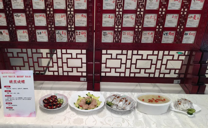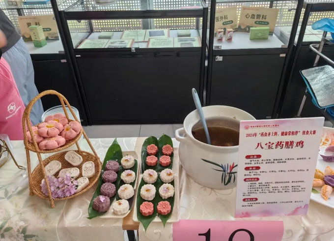 活動現(xiàn)場,參賽作品創(chuàng)意層出不窮,有造型別致的百合蝦球、清香撲鼻的八寶藥膳雞、五彩顏色的芡實錦鯉糕……造型優(yōu)美,工藝考究,獨具匠心,一道道藥膳美食香氣四溢,比賽現(xiàn)場猶如“百家宴”,呈現(xiàn)了一場藥借食力、食助藥威、相輔相成、相得益彰的美食盛宴。一道道藥膳色香味俱全,令人垂涎三尺。