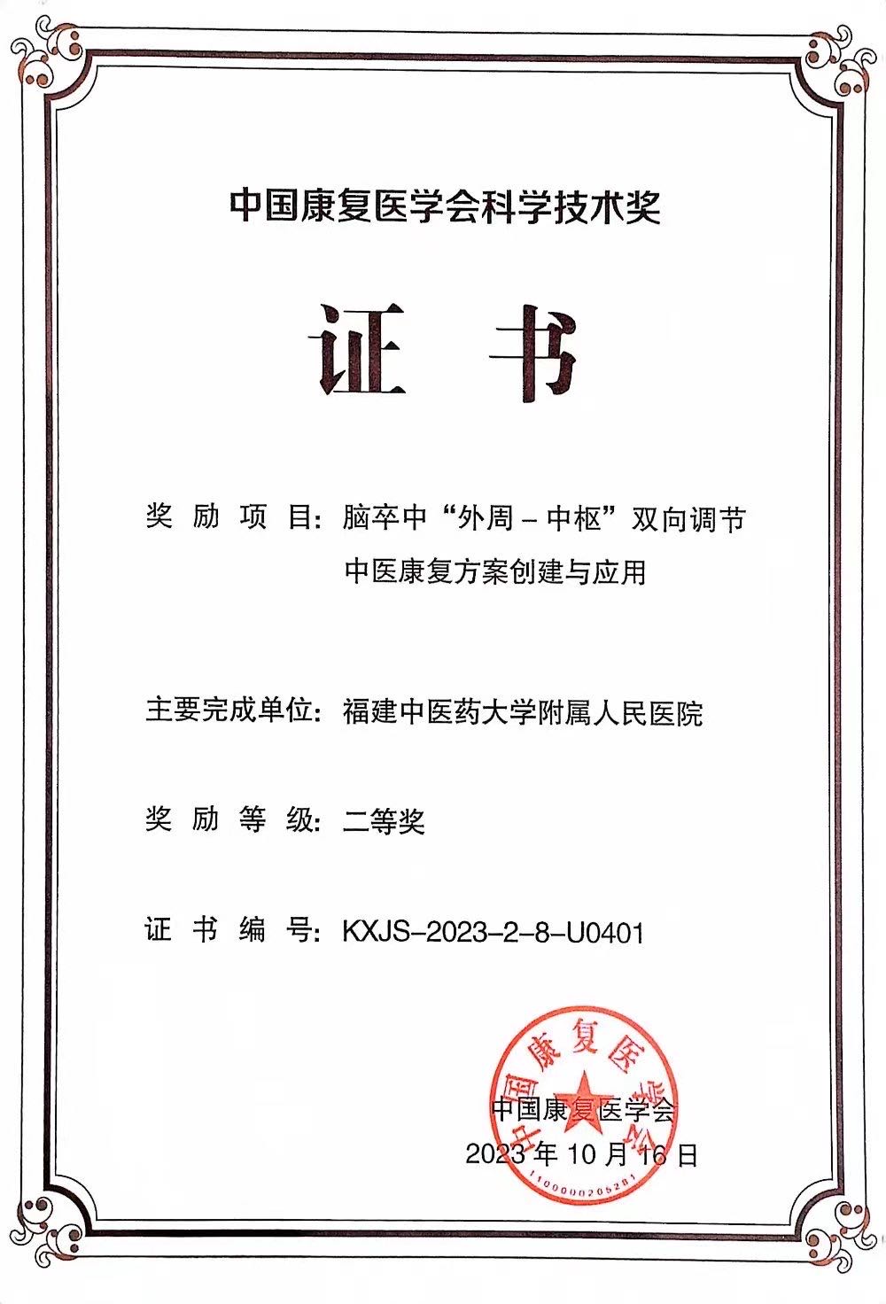 2023年度中國(guó)康復(fù)醫(yī)學(xué)會(huì)科學(xué)技術(shù)獎(jiǎng)二等獎(jiǎng)