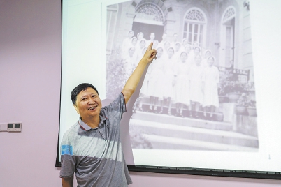 潘亮展示父親拍攝的省人民醫(yī)院老照片。