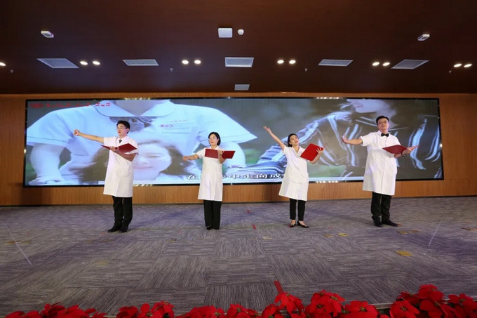 會上,趙紅佳書記代表醫(yī)院黨委向全體醫(yī)師致以誠摯的節(jié)日問候和崇高的敬意!感謝全體醫(yī)務人員長期以來堅持“人民至上、生命至上”, 弘揚新時代醫(yī)療衛(wèi)生職業(yè)精神,在平凡的崗位上無私奉獻,努力為人民群眾提供更高質量的健康服務,為醫(yī)院發(fā)展建設做出重要貢獻!感謝剛踏入工作崗位的青年醫(yī)師,為醫(yī)院注入了新的活力和希望;感謝年富力強、勇挑重擔的中青年醫(yī)師,是醫(yī)院發(fā)展的中堅力量,是醫(yī)院可持續(xù)發(fā)展的脊梁;更感謝那些長期奮戰(zhàn)在臨床一線的老專家、老同志,用豐富的經(jīng)驗和深厚的功底為醫(yī)院的發(fā)展奠定了堅實的基礎!今年醫(yī)師節(jié)的主題為“崇尚人文精神,彰顯醫(yī)者仁心”,希望大家牢記“人民醫(yī)院為人民”的殷切囑托,堅持以人民健康為中心,傳承和弘揚偉大抗疫精神,牢記醫(yī)者初心使命,更求真務實,守正創(chuàng)新,接續(xù)奮斗,共同譜寫醫(yī)院高質量發(fā)展新篇章,向建國75周年和建院70周年獻禮!