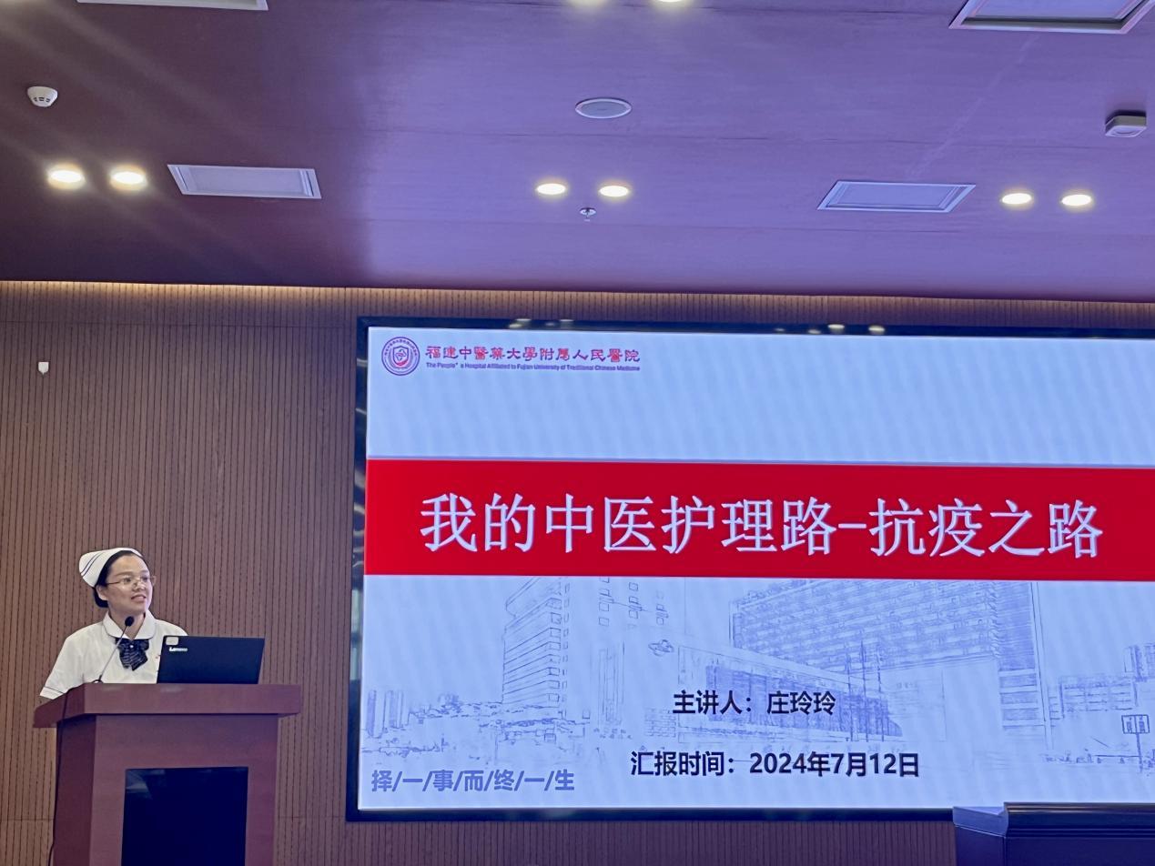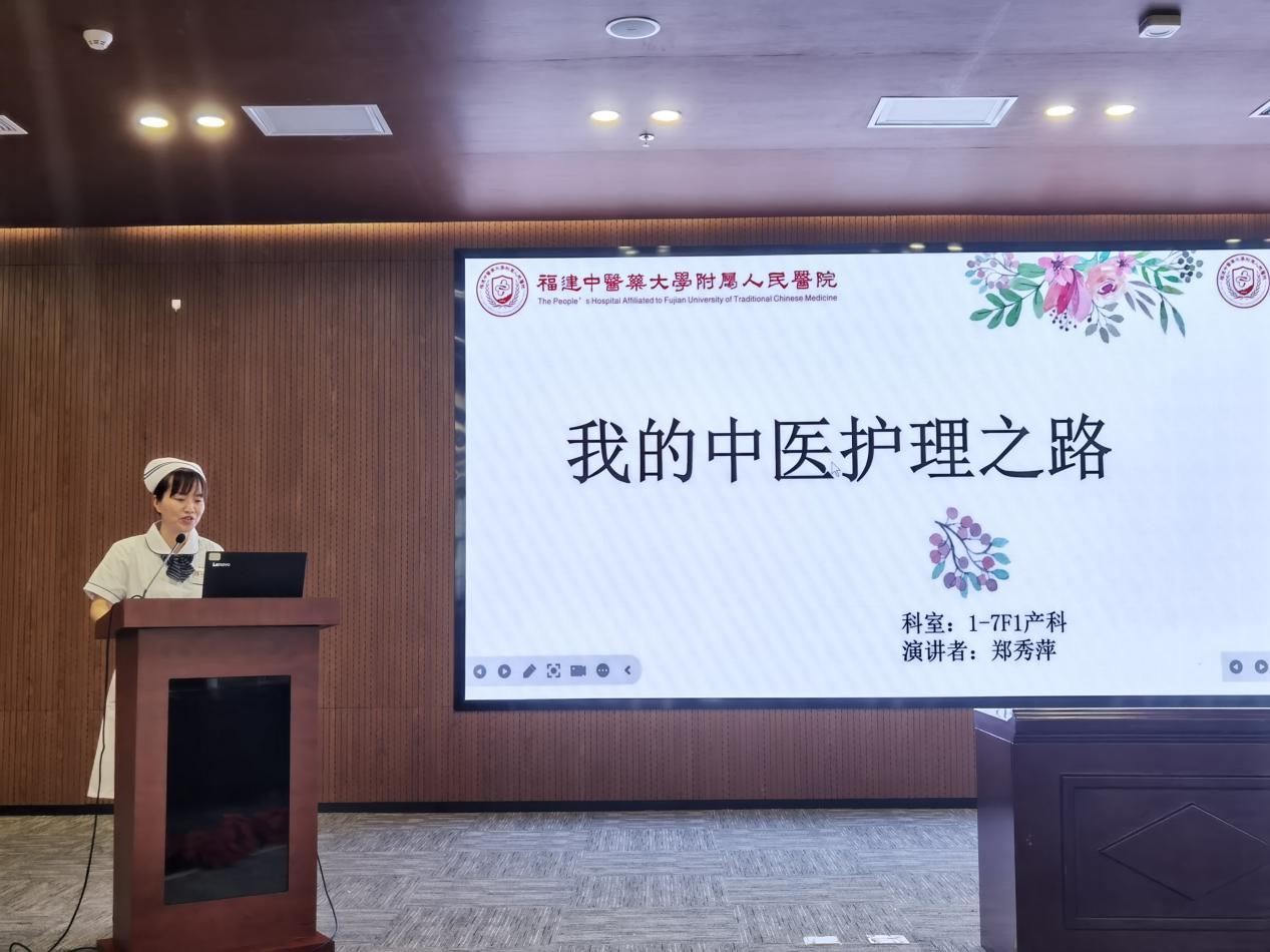 呼吸科護士長陳水鳳以“賡續(xù)傳承,篤行不怠”為題,向大家分享了她從一名中醫(yī)院校畢業(yè)的學(xué)生再到全國中醫(yī)護理骨干人才成長經(jīng)歷,她將外出進修中學(xué)到的先進經(jīng)驗和腕踝針、平衡火罐、蠟療等中醫(yī)適宜技術(shù)融入醫(yī)院護理工作當(dāng)中,為群眾提供更加優(yōu)質(zhì)的護理服務(wù),真正做到了“走出去,帶回來”。