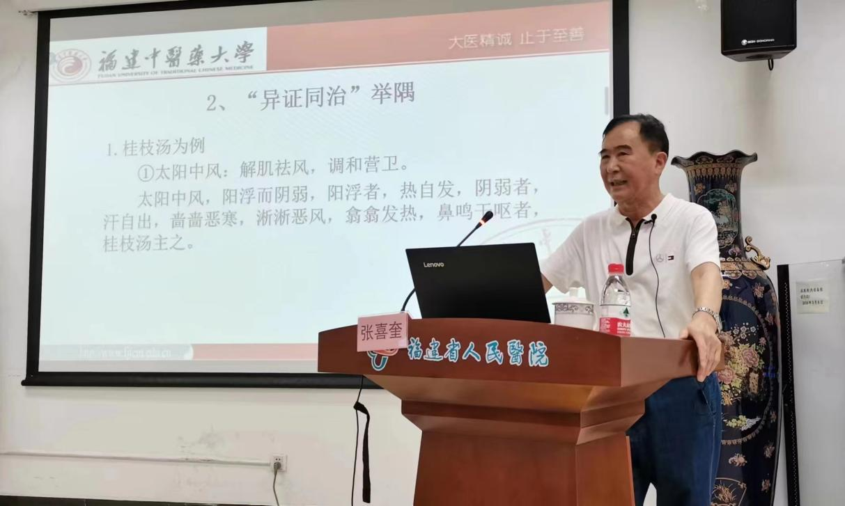 2022年6月27日下午,“吉祥講壇”第八期在我院1號(hào)樓附屬樓3層會(huì)議室開(kāi)講,全國(guó)中醫(yī)高校名師、國(guó)家中醫(yī)藥管理局重點(diǎn)學(xué)科傷寒論學(xué)科帶頭人張喜奎教授蒞臨講授《傷寒論》論異證同治、同證異治。全院醫(yī)護(hù)和師生員工在現(xiàn)場(chǎng)或通過(guò)線上參加。