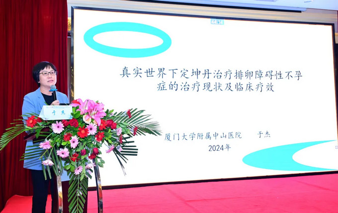 廈門大學(xué)附屬中山醫(yī)院于杰教授以《真實(shí)世界下定坤丹在治療排卵障礙性不孕癥的治療現(xiàn)狀及臨床療效》為題作學(xué)術(shù)報告