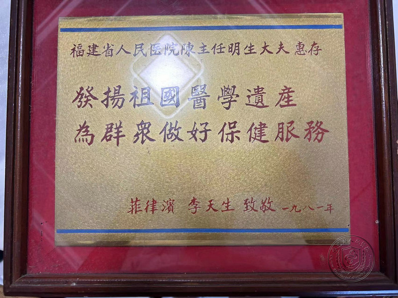讓陳文祥印象深刻的是,上個世紀70年代,一位菲律賓華僑李先生專程回福州找他父親看病。李先生患有眼底黃斑病變,多年求醫(yī)病情無法得到控制。陳明生運用中藥辨證療法對癥治療,一段時間用藥后,李先生病情明顯好轉(zhuǎn),十分感激老中醫(yī)給他帶來光明。后來,每一次回福州,他都到醫(yī)院復查,還推薦許多華人華僑來找他父親就診。
