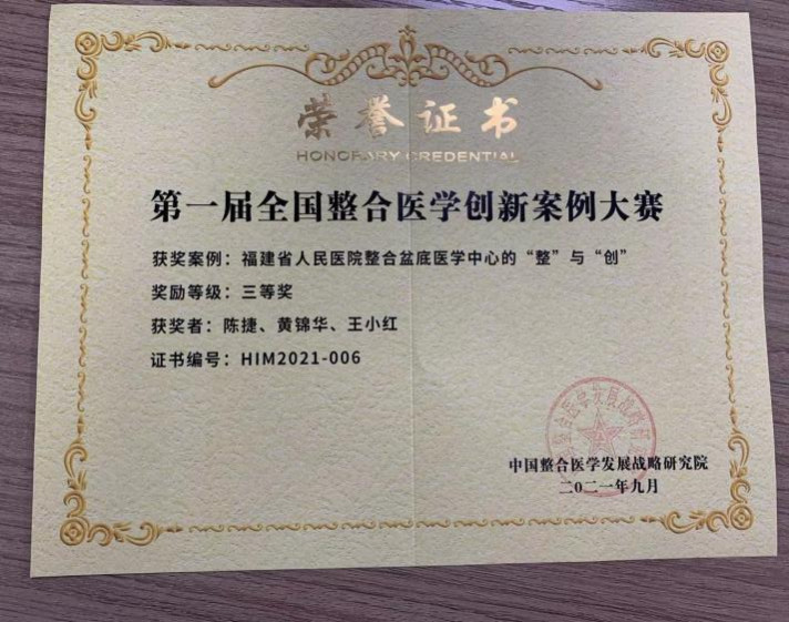 2021年盆底醫(yī)學(xué)中心的“整”與“創(chuàng)” 獲第一屆全國(guó)整合醫(yī)學(xué)創(chuàng)新案例大賽三等獎(jiǎng)