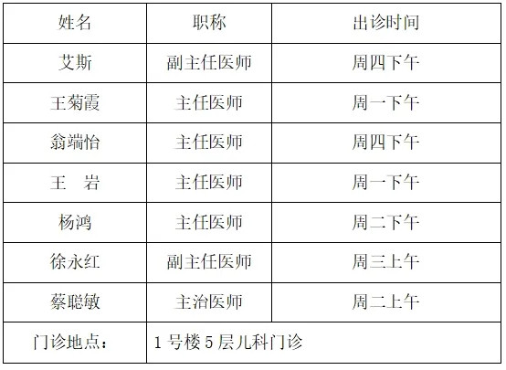 1. 兒童生長(zhǎng)發(fā)育/內(nèi)分泌專(zhuān)病門(mén)診