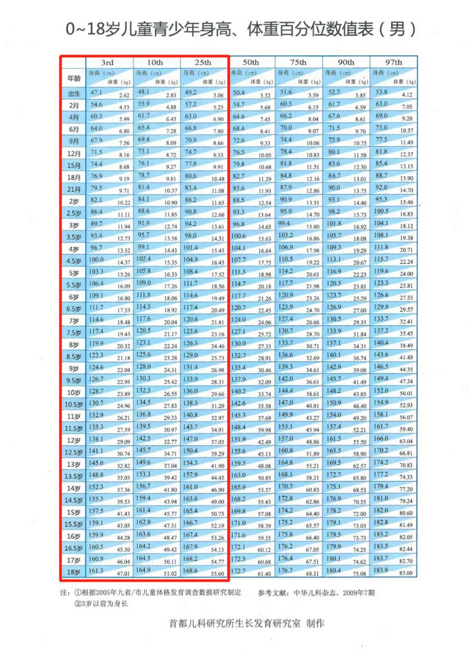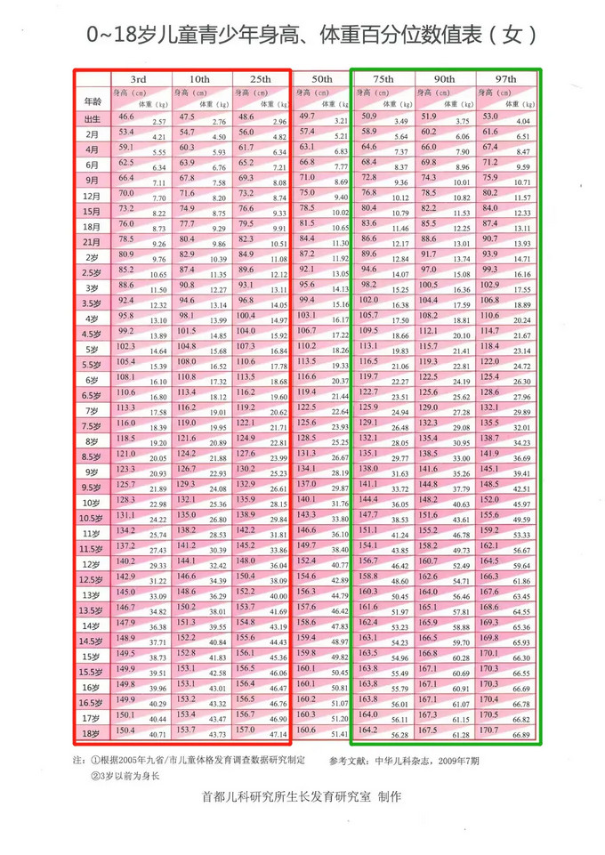 ①3-15歲身材矮小、早發(fā)育、肥胖的兒童和青少年(男生女生分別對(duì)照相應(yīng)表格,年齡為周歲,身高體重在25th以下(或女生超過75th)為本次義診的目標(biāo)人群)。