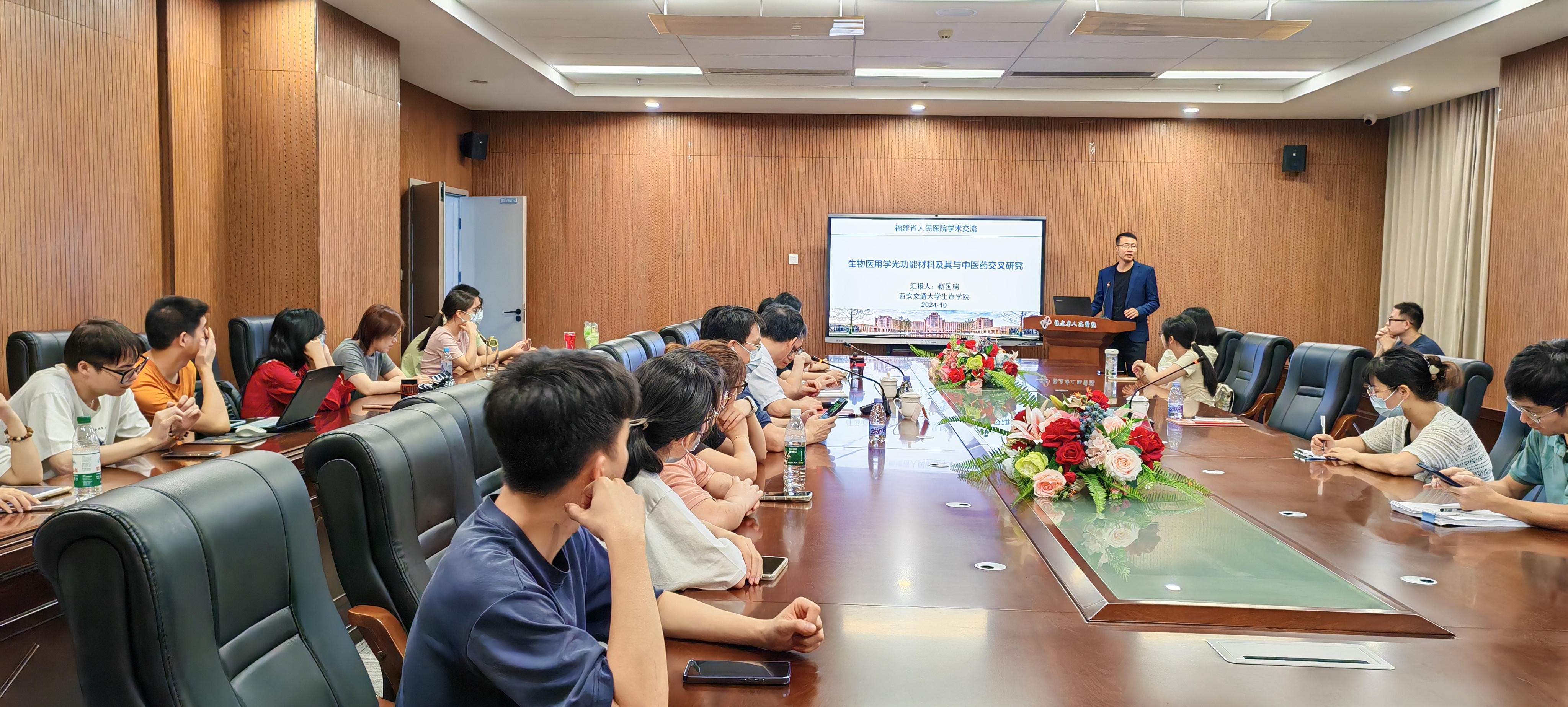 醫(yī)工交叉是國家自然科學(xué)基金支持的一個重要領(lǐng)域,為促進(jìn)我院科研人員對該領(lǐng)域的了解,2024年10月18日下午,我院舉辦了題為《生物醫(yī)用學(xué)光功能材料及其與中醫(yī)藥交叉研究》的科研學(xué)術(shù)講座。本次講座邀請了西安交通大學(xué)生命學(xué)院的靳國瑞教授就光功能材料與醫(yī)工融合作了精彩的學(xué)術(shù)報告。徐順貴副院長出席本次會議,我院科研團(tuán)隊骨干、研究生等積極參會。
