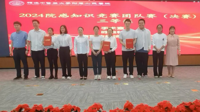 全院各科室醫(yī)護人員積極報名備戰(zhàn),經(jīng)過初賽(筆試)的激烈比拼,產(chǎn)生6名個人獎,并且有8支優(yōu)秀參賽隊伍進入決賽,每只決賽隊伍由3名優(yōu)秀選手組成,決賽以現(xiàn)場答題方式進行,題型包含必答題、搶答題、風險題等。決賽還特邀施婉玲副院長、醫(yī)務處陶翔主任、護理部黃惠榕主任、法務部劉新主任、院感管理部范云暉主任擔任嘉賓評委。施婉玲副院長在開場致辭中強調:“院感知識競賽正是我們積極響應國家關于加強醫(yī)院感染管理工作號召,深化院感文化內涵建設,推動院感知識普及與應用的重要舉措。它不僅是一場知識與技能的較量,更是一次責任與擔當?shù)恼宫F(xiàn)。通過競賽,我們希望能夠激發(fā)全院職工學習院感知識的熱情,促進院感防控理念的深入人心,進一步鞏固和提升我院的院感防控水平!”在院領導的鼓舞激勵下,各位參賽選手沉著應戰(zhàn),充分體現(xiàn)個人風采和團隊協(xié)作精神,還有豐富的院感知識儲備。經(jīng)歷精彩絕倫的角逐,8支優(yōu)秀代表隊決出了團體各獎項,隨后舉行了隆重的頒獎儀式,嘉賓評委們?yōu)閭€人獎和團隊獎的獲得者頒發(fā)了榮譽證書,現(xiàn)場氣氛推向高潮。