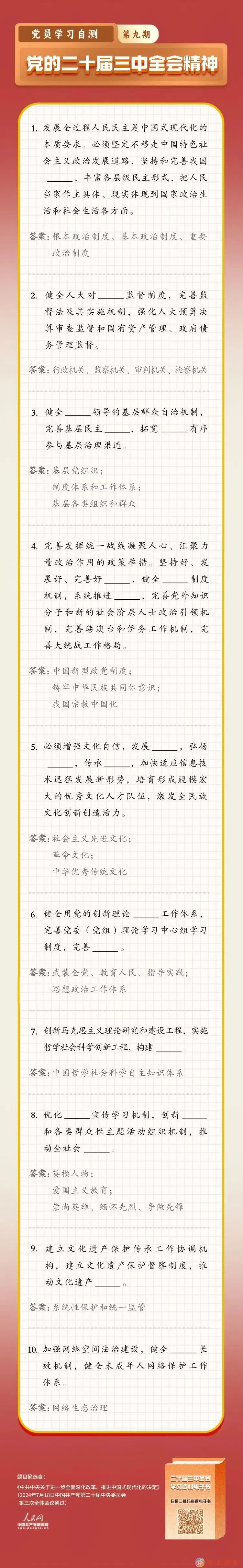 黨的二十屆三中全會(huì)精神學(xué)習(xí)自測(cè)(第九期)
