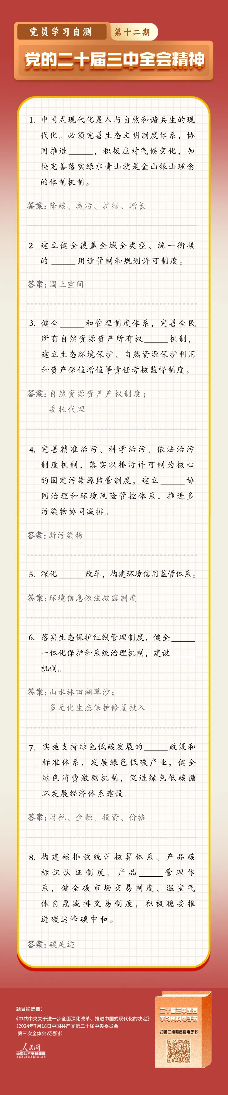 黨的二十屆三中全會(huì)精神學(xué)習(xí)自測(cè)(第十二期)