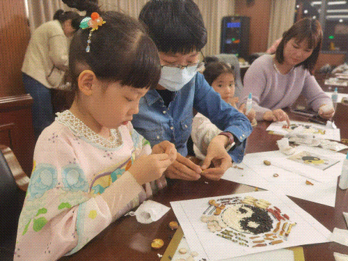 貼出國(guó)粹,貼出美。只見孩子們仔細(xì)觀察中藥材的形態(tài)、顏色、紋理,不時(shí)湊近鼻子聞聞藥材的氣味,接著,以中藥材作為“畫筆”和“顏料”,小心地將它們拼剪、鑲嵌、粘貼在畫稿上。
