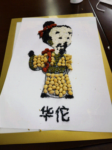 “中醫(yī)始祖”扁鵲、發(fā)明麻沸散的華佗、親嘗百草的神農(nóng)、提出“大醫(yī)精誠(chéng)”的孫思邈;八卦圖、八段錦、五禽戲……看著一張張孩子們用中藥貼成的畫,看著中醫(yī)藥文化知識(shí)被以有形的藝術(shù)表現(xiàn),令人不禁感嘆孩子們的想象力與動(dòng)手能力。