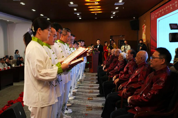 中醫(yī),作為中華民族的文化瑰寶,歷經(jīng)千年滄桑而依舊熠熠生輝。在這份光輝的背后,離不開一代又一代中醫(yī)人的不懈努力與薪火相傳。中醫(yī)師承,不僅是醫(yī)術(shù)的傳遞,更是文化的傳承。正是有了傳承,古老的岐黃之術(shù)在現(xiàn)代社會中才能煥發(fā)出新的生機(jī)和活力。大會舉行了莊重神圣的拜師儀式。行拜師禮、呈拜師貼、奉拜師茶……國醫(yī)大師楊春波、陳民藩,全國名中醫(yī)杜建,福建省名中醫(yī)王和鳴、鄭健、梁棟富、李學(xué)麟、石榮等8位指導(dǎo)老師與弟子們締結(jié)師徒關(guān)系,寓意岐黃薪火,代代相傳。