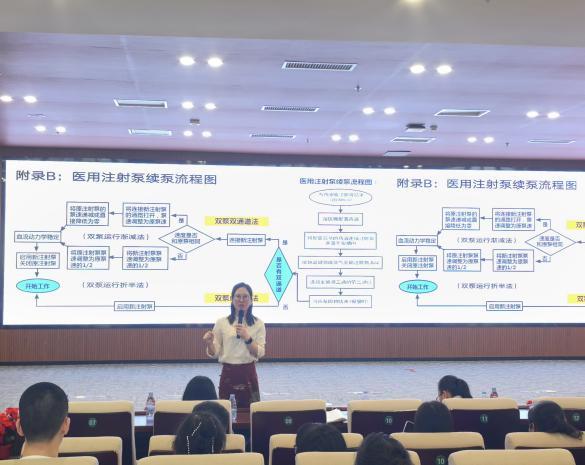 ??谱o(hù)士范曉麗帶領(lǐng)大家一起重溫了血管活性藥物靜脈輸注護(hù)理團(tuán)體標(biāo)準(zhǔn)的解讀,并通過現(xiàn)場(chǎng)游戲互動(dòng)的方式展示了臨床常見護(hù)理操作——血管活性藥物的使用,并現(xiàn)場(chǎng)進(jìn)行血管活性藥物的雙泵雙通道續(xù)泵連接法的PK,選手們根據(jù)現(xiàn)場(chǎng)抽取的題目為大家展示血管活性藥物的續(xù)泵操作,他們嫻熟精準(zhǔn)的操作將此次沙龍活動(dòng)推向高潮,讓護(hù)理人員直觀地認(rèn)識(shí)到在實(shí)際工作中應(yīng)用血管活性藥物的細(xì)節(jié)及注意事項(xiàng)。