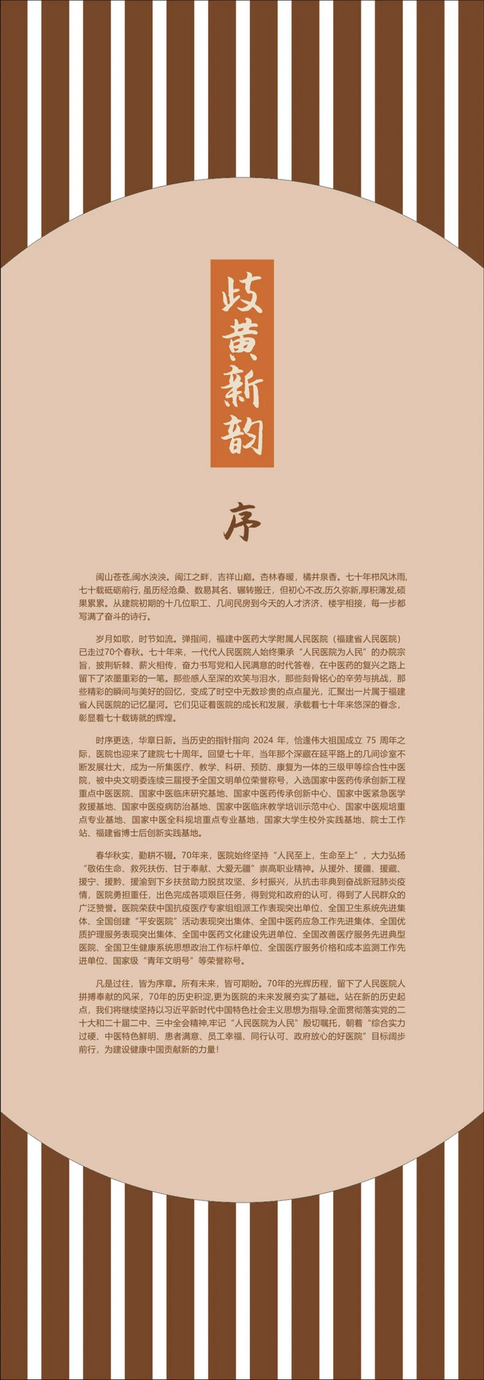 七十載歲月,積淀了歷史,塑造了文化;七十載歲月,磨煉了精神,激發(fā)了力量;站在新的歷史起點(diǎn)上,福建中醫(yī)藥大學(xué)附屬人民醫(yī)院將始終瞄準(zhǔn)目標(biāo)鍥而不舍,錨定發(fā)展凝神聚力,以更加昂揚(yáng)奮進(jìn)的姿態(tài)、更加廣闊豪邁的情懷,為一方百姓的生命健康繼續(xù)保駕護(hù)航,再譜醫(yī)院波瀾壯闊的絢麗華章。