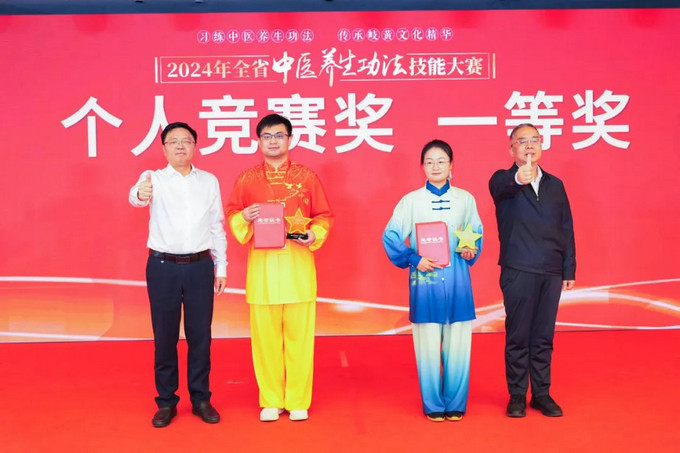 為進(jìn)一步弘揚(yáng)中醫(yī)藥健康文化,傳承中醫(yī)藥傳統(tǒng)技能,讓中醫(yī)藥傳統(tǒng)養(yǎng)生方式融入日常生活,促進(jìn)廣大群眾身體健康。2024年福建省中醫(yī)養(yǎng)生功法技能大賽由福建省衛(wèi)健委、福建省總工會(huì)主辦。經(jīng)過(guò)設(shè)區(qū)市、各省屬醫(yī)療機(jī)構(gòu)開(kāi)展選拔賽及省級(jí)決賽激烈角逐,我院代表隊(duì)從初賽、復(fù)賽、最后知識(shí)競(jìng)答擂臺(tái)賽各環(huán)節(jié)均以第一名突破重圍,最終綜合得分以?xún)?yōu)異成績(jī)榮獲全場(chǎng)第一名佳績(jī),取得2024年全省中醫(yī)養(yǎng)生功法技能大賽團(tuán)體競(jìng)賽一等獎(jiǎng)、施婉玲副院長(zhǎng)榮獲特別貢獻(xiàn)獎(jiǎng)(個(gè)人)、康復(fù)科游小芳主治醫(yī)師榮獲個(gè)人競(jìng)賽一等獎(jiǎng)。
