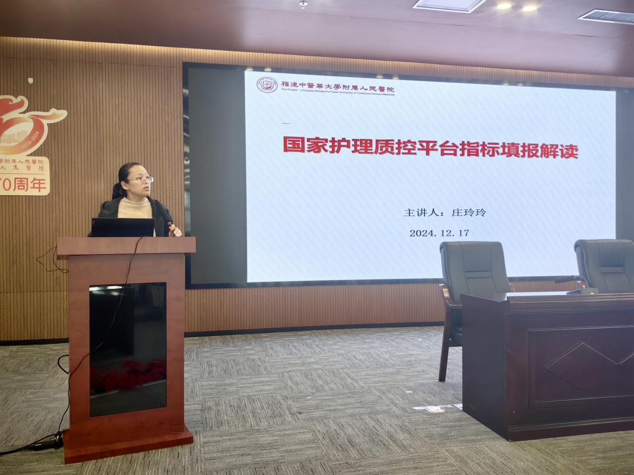 為了進(jìn)一步落實(shí)《國家衛(wèi)生健康委辦公廳關(guān)于印發(fā)藥事管理和護(hù)理專業(yè)醫(yī)療質(zhì)量控制指標(biāo)(2020年版)的通知》,為了促進(jìn)護(hù)理質(zhì)量管理科學(xué)化、標(biāo)準(zhǔn)化、規(guī)范化、精細(xì)化和同質(zhì)化,我院于2024年12月17日組織各護(hù)理單元護(hù)士長及相關(guān)護(hù)理人員進(jìn)行了《國家護(hù)理質(zhì)控平臺指標(biāo)填報解讀》的專題培訓(xùn)。此次培訓(xùn)由莊玲玲督導(dǎo)負(fù)責(zé)主講。