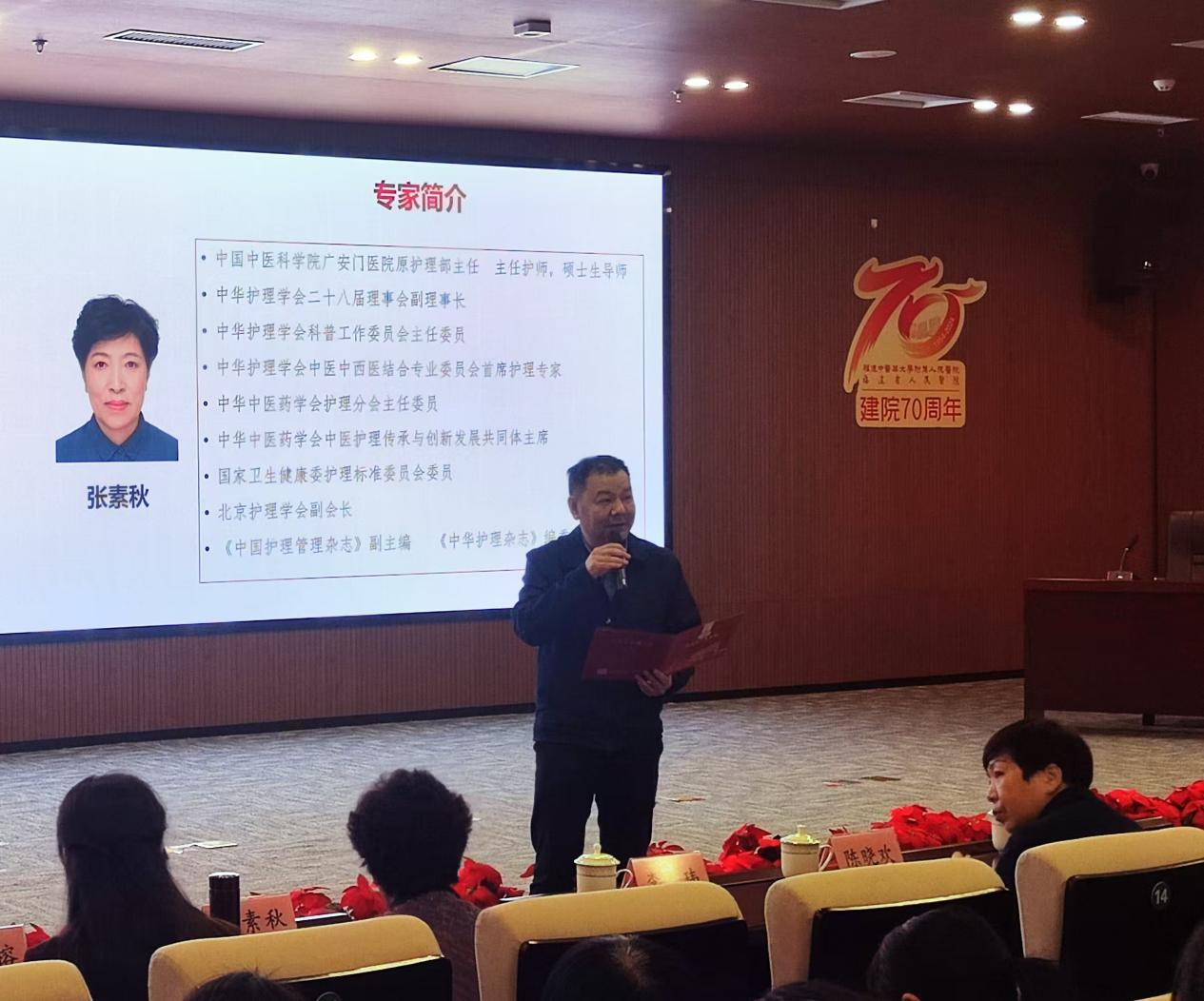 2024年12月11日,福建中醫(yī)藥大學(xué)附屬人民醫(yī)院舉辦了一場學(xué)術(shù)盛會。此次學(xué)術(shù)會議邀請了中醫(yī)護(hù)理領(lǐng)域權(quán)威專家,中華護(hù)理學(xué)會二十八屆理事會副理事長、中華護(hù)理學(xué)會中醫(yī)中西醫(yī)結(jié)合專業(yè)委員會首席護(hù)理專家、中華護(hù)理學(xué)會科普工作委員會主任委員、中華中醫(yī)藥學(xué)會護(hù)理分會主任委員張素秋教授,就“中醫(yī)人才培養(yǎng)的思考”這一主題,為醫(yī)院護(hù)理人員獻(xiàn)上了一場內(nèi)容詳實、意義深遠(yuǎn)的專題講座。張素秋教授憑借其淵博的專業(yè)知識和豐富的實踐經(jīng)驗,從國內(nèi)外??谱o(hù)士培訓(xùn)現(xiàn)狀、中醫(yī)護(hù)理人才現(xiàn)狀以及??谱o(hù)士培養(yǎng)等多個方面,進(jìn)行了全面且深入的剖析與闡述。
