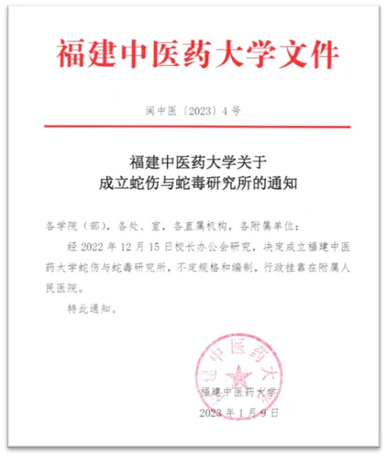 2022年:鄭則敏全國(guó)名老中醫(yī)藥專(zhuān)家傳承工作室建設(shè)項(xiàng)目獲批,同年福建中醫(yī)藥大學(xué)蛇傷與蛇毒研究所成立。