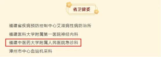 福建中醫(yī)藥大學(xué)附屬人民醫(yī)院急診科是國(guó)家中醫(yī)藥管理局中醫(yī)藥重點(diǎn)學(xué)科建設(shè)單位,中國(guó)中醫(yī)急診??漆t(yī)聯(lián)體副主席單位,福建省中醫(yī)急診??漆t(yī)聯(lián)體主席單位,福建省中西醫(yī)結(jié)合急診重點(diǎn)??疲=ㄖ嗅t(yī)藥大學(xué)急診醫(yī)學(xué)碩士培養(yǎng)點(diǎn)。曾榮獲福建省衛(wèi)生健康系統(tǒng)先進(jìn)集體,福建省“五一先鋒崗”稱號(hào)。