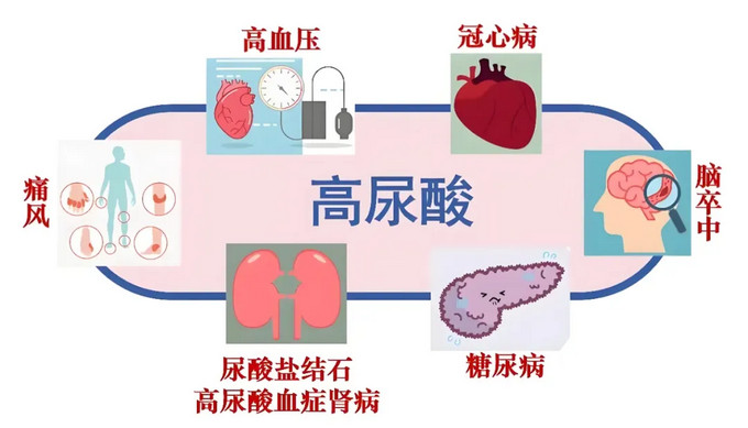 痛風(fēng)并非單純的“關(guān)節(jié)炎”,還常常并發(fā)肥胖、高脂血癥、高血壓、糖尿病等其他代謝綜合征。痛風(fēng)反復(fù)發(fā)作會形成痛風(fēng)石、慢性痛風(fēng)石關(guān)節(jié)炎,導(dǎo)致關(guān)節(jié)僵硬變形、功能障礙;沉積于腎臟可引起尿酸性腎結(jié)石、尿酸鹽性腎??;尿酸可參與多種心血管疾病的發(fā)生、發(fā)展,還可導(dǎo)致缺血性卒中的發(fā)生。