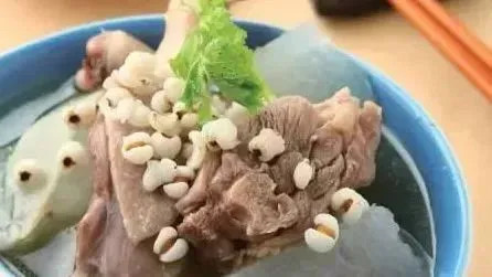 做法:鴨肉焯水去腥,薏米、茯苓提前浸泡1小時(shí),所有材料燉煮1.5小時(shí),加鹽調(diào)味