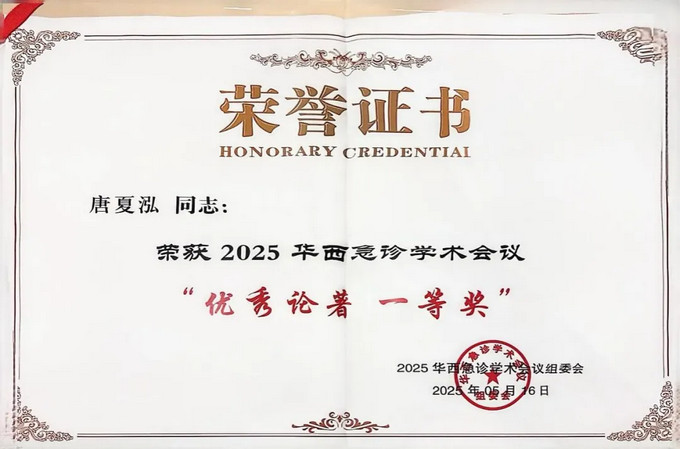 2025年5月15日至18日,由中國工程院院士領(lǐng)銜、全國急診領(lǐng)域頂尖專家參與的“2025華西急診學(xué)術(shù)會議暨第14屆華西急診聯(lián)盟會議”在成都隆重召開。會議聚焦“健康優(yōu)先,急思廣慮”主題,特設(shè)智慧急診論壇、急救資源協(xié)同等九大分論壇。福建中醫(yī)藥大學(xué)附屬人民醫(yī)院急診科唐夏泓博士的研究成果經(jīng)大會學(xué)術(shù)委員會多輪評審,從全國參評論文中脫穎而出,最終榮膺大會“優(yōu)秀論著一等獎”。