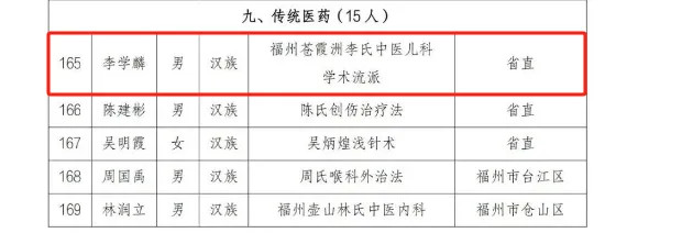 近日,福建省文化和旅游廳公布了第六批省級非物質(zhì)文化遺產(chǎn)代表性傳承人名單,福建中醫(yī)藥大學(xué)附屬人民醫(yī)院傳統(tǒng)內(nèi)科李學(xué)麟教授成功入選該名單,榮膺“福州蒼霞洲李氏中醫(yī)兒科學(xué)術(shù)流派”省級代表性傳承人稱號,這一殊榮是對他在中醫(yī)兒科領(lǐng)域深厚學(xué)術(shù)造詣、豐富臨床經(jīng)驗以及長期致力于傳承和弘揚傳統(tǒng)中醫(yī)兒科文化的高度肯定。