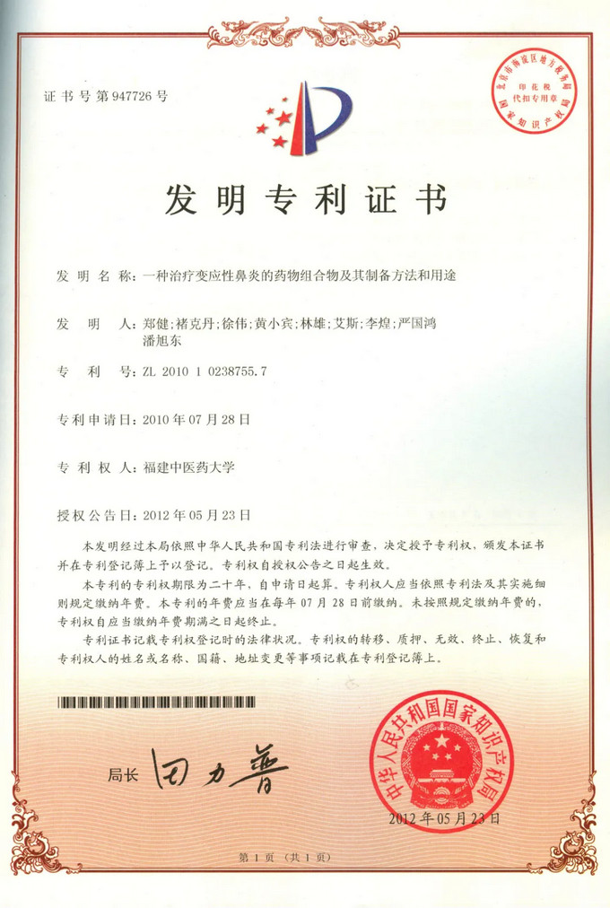 發(fā)明專利證書