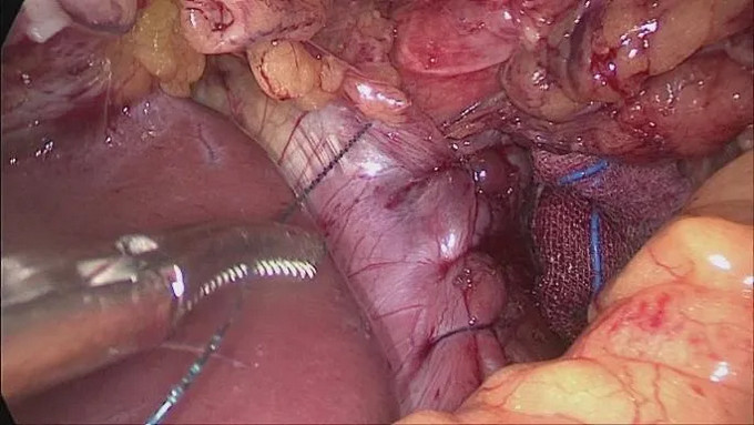 2.腹段食管游離:通過腹腔鏡將疝入胸腔的胃體游離并拉回腹腔;