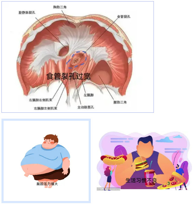 1、解剖結(jié)構(gòu)異常:膈肌裂孔松弛或擴(kuò)大,食管周圍韌帶彈性減弱(尤其老年人)。