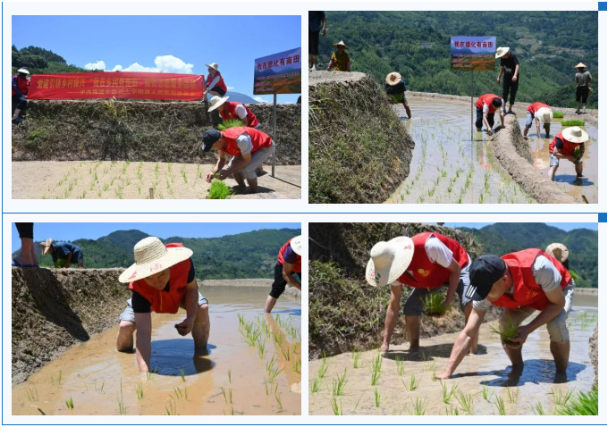 醫(yī)護志愿者們在兩位院領(lǐng)導(dǎo)的帶領(lǐng)下,穿過坑坑洼洼的林間盤山小路,到水口鎮(zhèn)八逞村開展“我在鄉(xiāng)間有畝田”志愿服務(wù)活動,以實際行動助力鄉(xiāng)村振興和保障糧食安全。大家頂著烈日,來到認領(lǐng)的梯田,脫下鞋子、挽起褲腿走進水田中,在當(dāng)?shù)卮迕竦闹笇?dǎo)下,興致勃勃開始耕作。大家彎腰埋頭,左手托秧苗,右手飛快地分苗、插秧,用沾滿泥土的雙腳丈量著土地的厚重。陽光下,志愿者勞作的身影倒映在水田里,嫩綠的秧苗隨風(fēng)搖曳,鮮艷的“志愿紅”與充滿生機的“秧苗綠”交輝相映,成為了田間地頭一道亮麗的“風(fēng)景線”。醫(yī)護志愿者們雖然汗流浹背,但收獲滿滿,不僅在插秧過程中真切體會到“鋤禾日當(dāng)午,汗滴禾下土”的艱辛和不易,更以沉浸式體驗強化了“保護糧食安全”的責(zé)任意識,讓“粒粒皆辛苦”的古訓(xùn)化作守護糧食安全的行動自覺。大家紛紛表示今后將從自身做起,愛惜糧食,杜絕舌尖上的浪費。