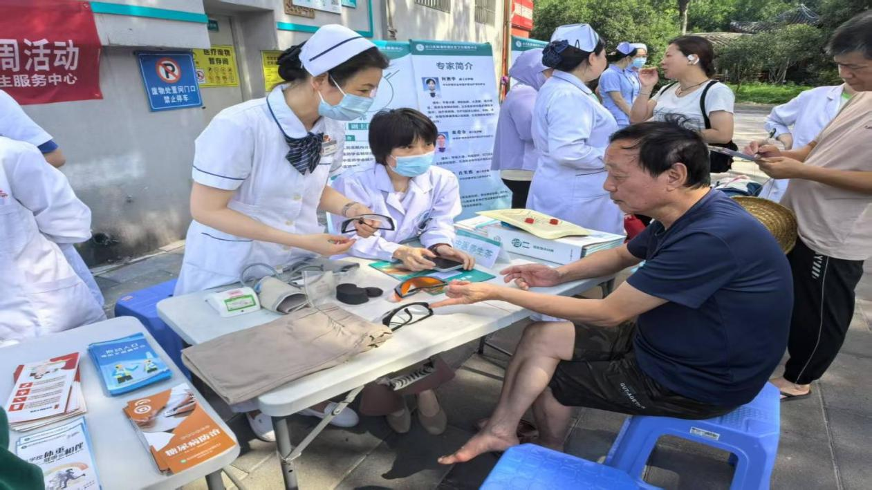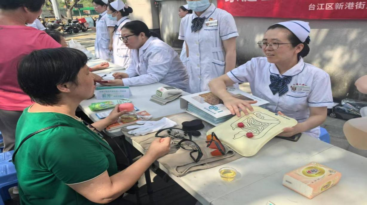 針對(duì)老年人高發(fā)的慢性病問題,義診團(tuán)隊(duì)設(shè)置了免費(fèi)測(cè)量血糖,為老年居民提供快速檢測(cè)和結(jié)果解讀,幫助早期發(fā)現(xiàn)血糖異常;通過模擬道具讓老年居民感受糖尿病周圍神經(jīng)病變等并發(fā)癥的危害,增強(qiáng)控糖意識(shí);造口???/span>護(hù)士手把手教授造口換藥知識(shí),幫助術(shù)后患者掌握科學(xué)的居家護(hù)理技巧。