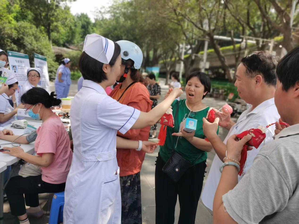 義診活動(dòng)接近尾聲,義診團(tuán)隊(duì)為到場(chǎng)的老年居民贈(zèng)送了中醫(yī)特色香囊。這些香囊具有避瘟防病的功效,香味濃郁,承載著護(hù)理人員對(duì)老年居民的深情厚誼與美好祝愿。