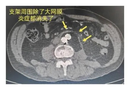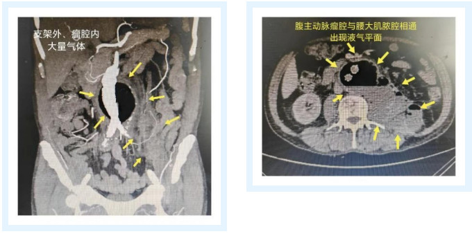 CTA所示支架周圍大量氣體、腹膜后巨大膿腫