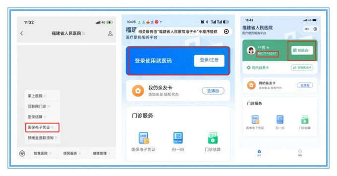 2. 初診自費(fèi)患者:(1)進(jìn)入醫(yī)院微信公眾號-選擇“醫(yī)保電子憑證”-申領(lǐng)“就醫(yī)碼”進(jìn)行就診;(2)持身份證等有效證件至收費(fèi)窗口辦理就診卡。