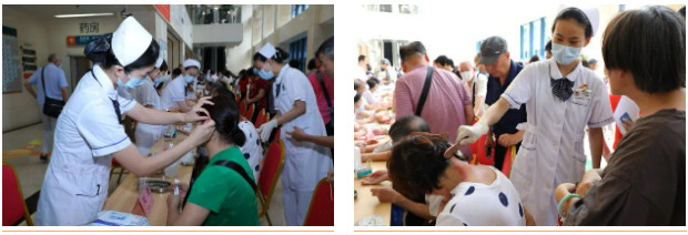 中醫(yī)特色療法體驗區(qū)的耳穴貼壓和火龍罐綜合灸療法,吸引現(xiàn)場不少市民前來體驗。