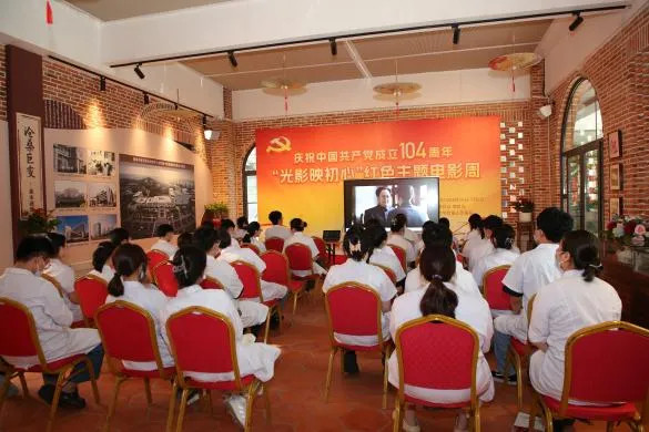 7月1日清晨,醫(yī)院“吉祥山?老時光”1號廳內(nèi)早已座無虛席。自6月30日起持續(xù)三天的紅色電影周展映活動中,《建黨偉業(yè)》《百團大戰(zhàn)》《建國大業(yè)》等經(jīng)典紅色影片每日從早到晚循環(huán)播放,吸引著醫(yī)護人員、患者及家屬絡繹不絕地走進展廳。經(jīng)典紅色影片在銀幕上重現(xiàn),槍炮聲與歷史畫外音交織,讓每個人都從銀幕歷史里照見了“來時路”的份量。