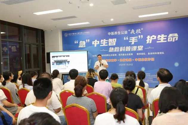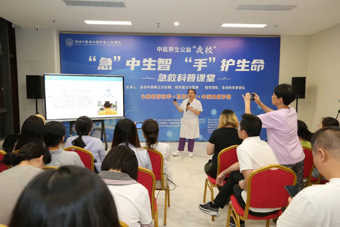7月25日晚,福建中醫(yī)藥大學附屬人民醫(yī)院7號樓1層燈火通明,一場以《“急”中生智 “手”護生命》為主題中醫(yī)公益夜校在此啟幕。原定的35個活動名額早就被搶報一空,到場人數翻番,現場爆滿,市民們帶著對急救知識的渴望與對中醫(yī)的好奇,共同開啟了一場知識與趣味并存的生命守護之旅。夏日禮包、養(yǎng)生茶飲、健康“撫胃操”……讓這場夜校不僅成為一次實用知識的學習,更帶來了貼心的關懷與體驗。