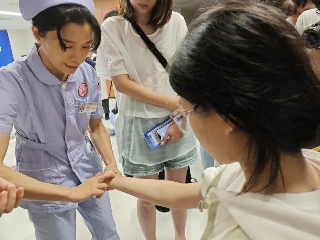 自由交流環(huán)節(jié)里,中醫(yī)急救技法展示區(qū)吸引了眾多市民駐足?,F場專門設置展臺,由醫(yī)護人員系統(tǒng)展示刮痧、穴位按摩、小兒推拿退熱等經典中醫(yī)急救技法。無需動手嘗試,市民們通過直觀觀察與醫(yī)護人員的同步講解,便能清晰了解各類技法的操作要點和適用場景。不少人拿出手機拍攝記錄,紛紛表示“這些方法簡單實用,回家能照著學”,傳統(tǒng)中醫(yī)急救的智慧在生動展示中傳遞給更多人。