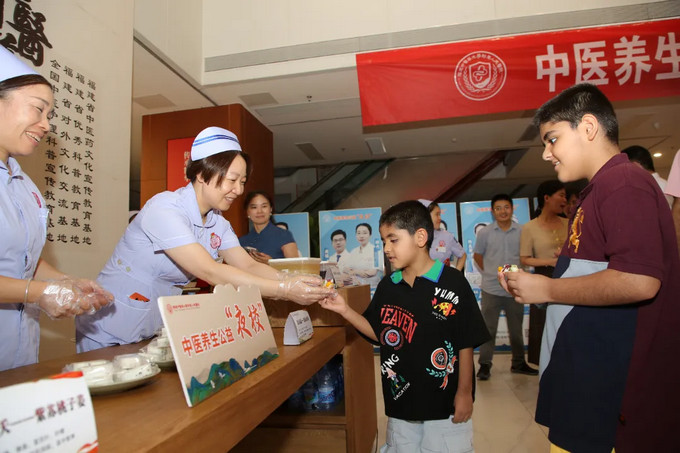 “So delicious!”來自巴基斯坦的友人用英文夸贊中醫(yī)藥膳的美味。一位阿姨笑道:“比奶茶甜點要健康,吃出了養(yǎng)生儀式感!”