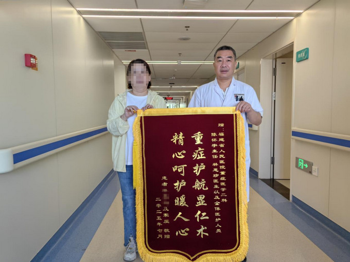 陳懷宇(右一)收到患者錦旗