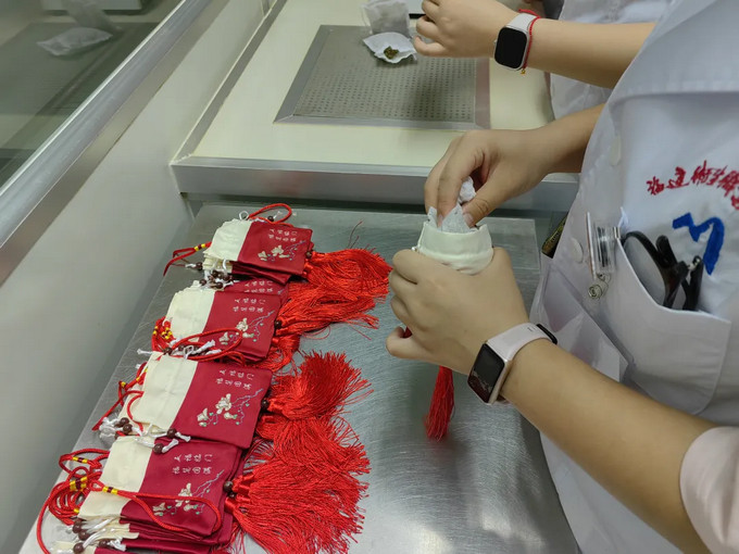 中藥香囊屬于中醫(yī)的“衣冠療法”,是中醫(yī)外治法的一種,是指通過佩戴中草藥于衣帽、飾物之中,利用藥物的芳香揮發(fā)成分經(jīng)口鼻、皮膚吸收,從而達(dá)到防病治病、驅(qū)蟲避穢、醒神開竅等目的。香囊作為衣冠療法的代表形式,最早可追溯至先秦時期,在漢代馬王堆漢墓中就已出土裝有芳香中藥的香囊實物。唐代孫思邈在《千金要方》中也明確記載:“避疫氣,令人不染”,強(qiáng)調(diào)了香囊在防疫中的作用。