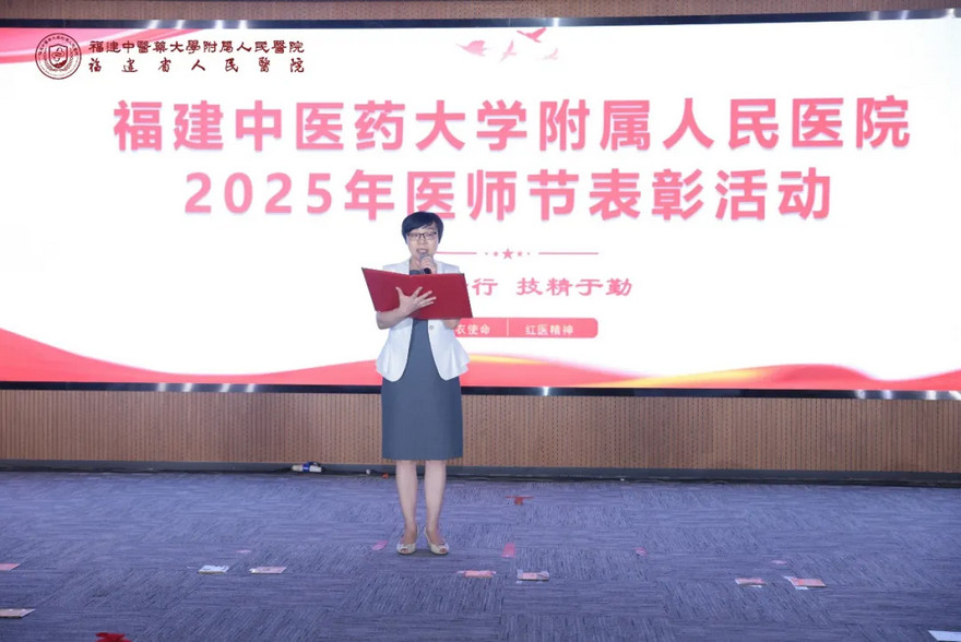 最后,福建中醫(yī)藥大學(xué)副校長、院黨委書記趙紅佳代表醫(yī)院領(lǐng)導(dǎo)班子向受到表彰的優(yōu)秀醫(yī)務(wù)工作者們致以熱烈祝賀。她強(qiáng)調(diào),站在新中國成立76周年、醫(yī)院建院71周年及“十四五”收官的關(guān)鍵節(jié)點(diǎn),全體醫(yī)務(wù)人員要以榜樣為鏡,深植“人民醫(yī)院為人民”初心,在診療中求極致、科研中闖未知、服務(wù)中懷暖意,秉持“德馨于行、技精于勤”,推動(dòng)醫(yī)療與服務(wù)“雙提升”,唯有將個(gè)人理想融入醫(yī)院發(fā)展與健康中國事業(yè),方能讓醫(yī)者精神在守護(hù)生命中綻放光彩,共譜高質(zhì)量發(fā)展新篇章。