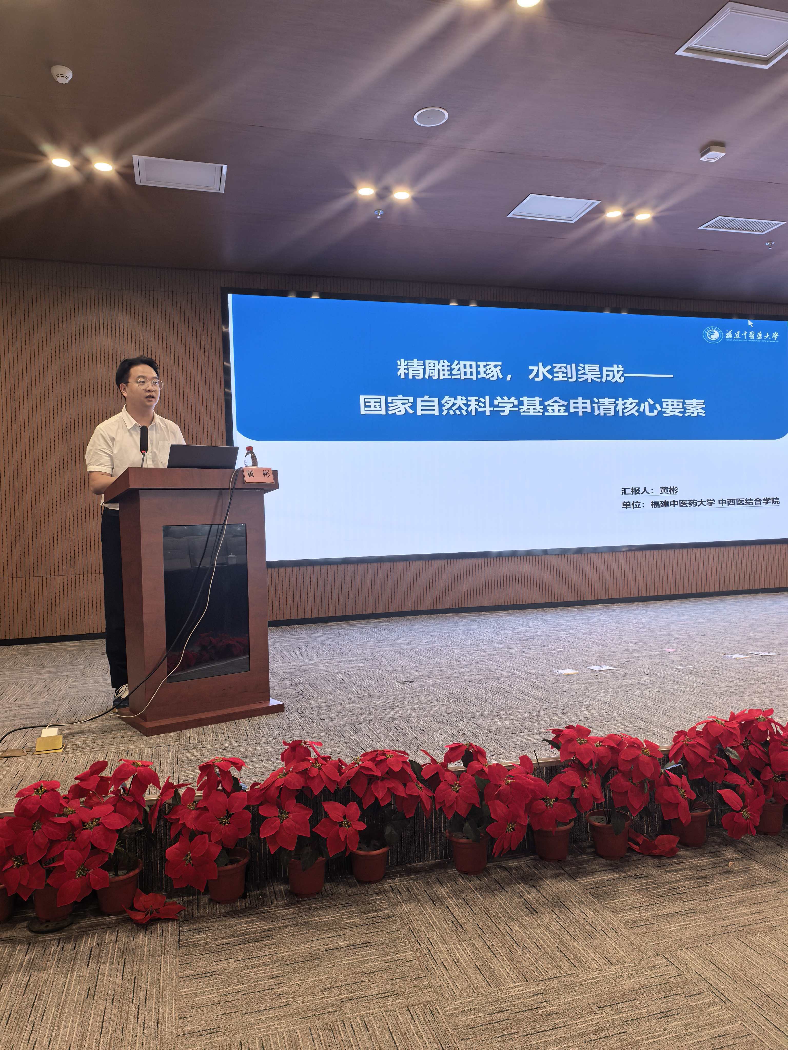 會議特邀兩位資深專家作專題指導。洪振豐教授以《2026國自然申報的思考》為題,用數(shù)據(jù)精準分析了2025年中醫(yī)藥領域中標項目特征及研究熱點,預判2026年“臨床需求導向”“多學科協(xié)同攻關”“青年人才托舉”三大趨勢,并結合本校中標案例,提出“早謀劃、強基礎、抓細節(jié)、重協(xié)作”的決勝路線圖。他多次提到青年高層次人才是科技發(fā)展的動力,鼓勵青年科研人員:“科研如航海,既要仰望星空錨定方向,更要腳踏實地打磨‘船體’?!?/span>