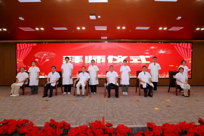 拜師儀式上,師生依次登臺(tái),敬上熱茶,行拜師之禮;老師以戒尺輕敲學(xué)生,訓(xùn)誡其守初心、擔(dān)使命、明尺度。茶香裊裊中,傳承岐黃薪火的誓言無(wú)聲流淌。